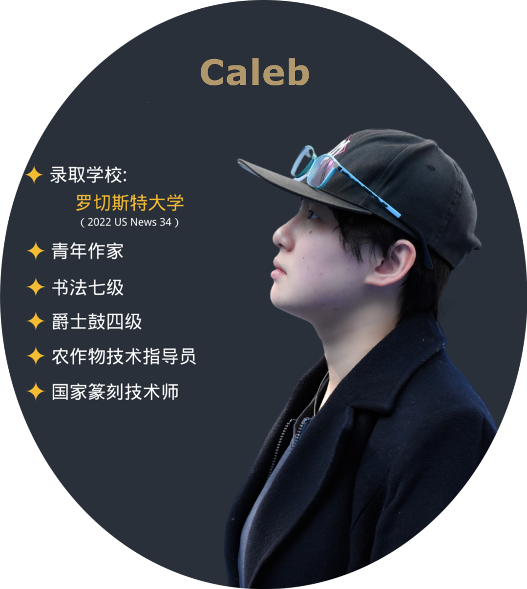 Editor's note: Caleb, a grade 12 student of ZWA (formerly known as ZWWC), has received an offer from the University of Rochester, which is ranked 34th in National Universities by U.S. News & World Report in 2022. Caleb is very passionate about writing, and she is a contract writer already. In addition to writing, Caleb has many other interests, such as calligraphy, jazz drums, seal carving, and does very well in these fields. Let's find out more about Caleb.